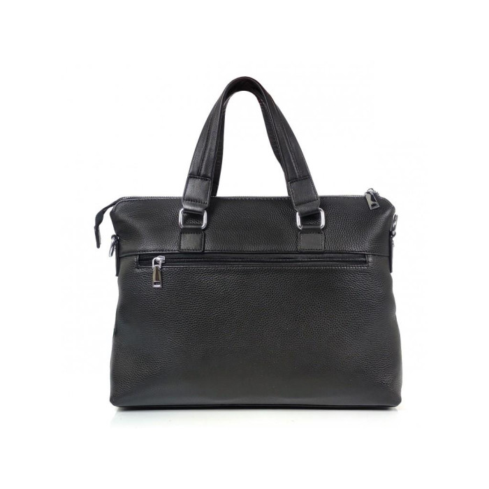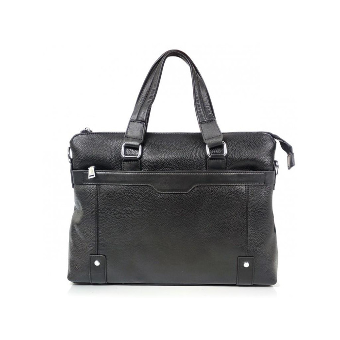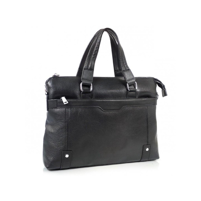 Стильна чоловіча сумка для ноутбука Tiding Bag F-A25F-17637A виготовлена з натуральної шкіри чорного кольору і має матову, зернисту текстуру.