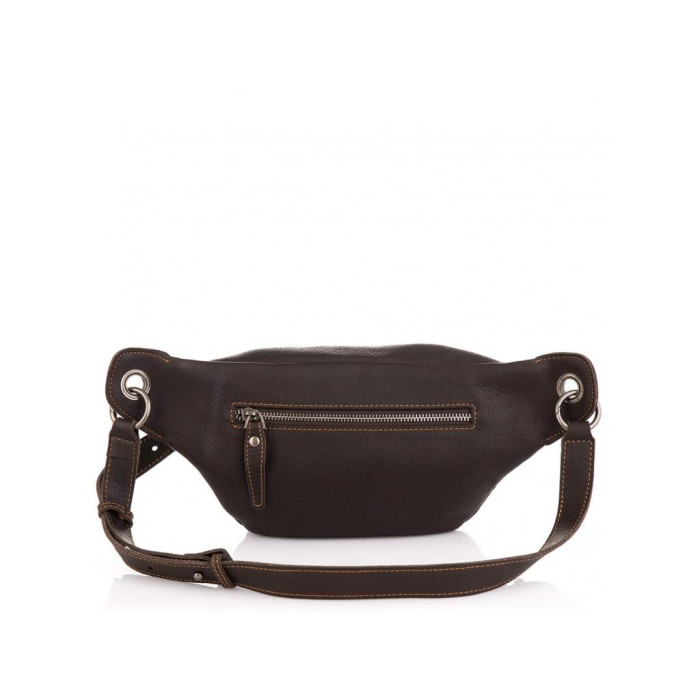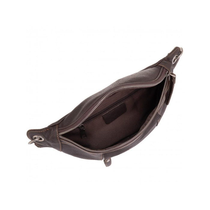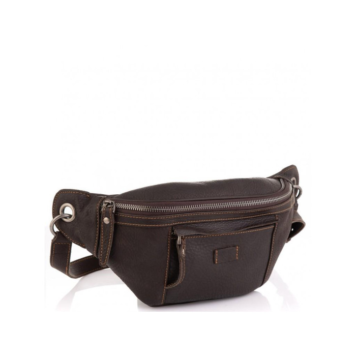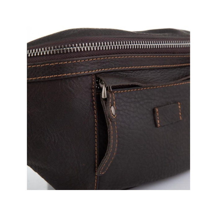Виробник: Tiding Bag Тип: сумка на пояс Розміри (см): 34 х 17 х 7 Колір: коричневий Матеріал: натуральна шкіра Тип носіння: на поясі Плечовий ремінь: немає Довжина плечового ременя (см): 57-104 Поясна сумка з зернистої шкіри коричневого кольору. Сумка має шкіряний ремінь і якісну сталеву фурнітуру. Усередині сумки одне основне відділення і маленька кишеня на замку. З лицьового боку- одна кишеня на замку, з тильного боку - ще одна кишеня на замку.