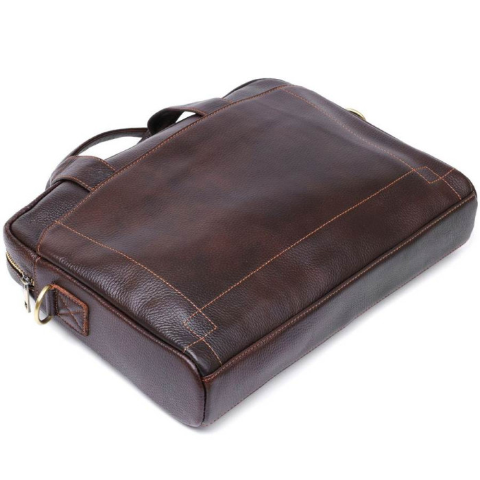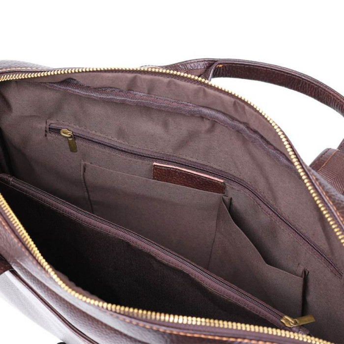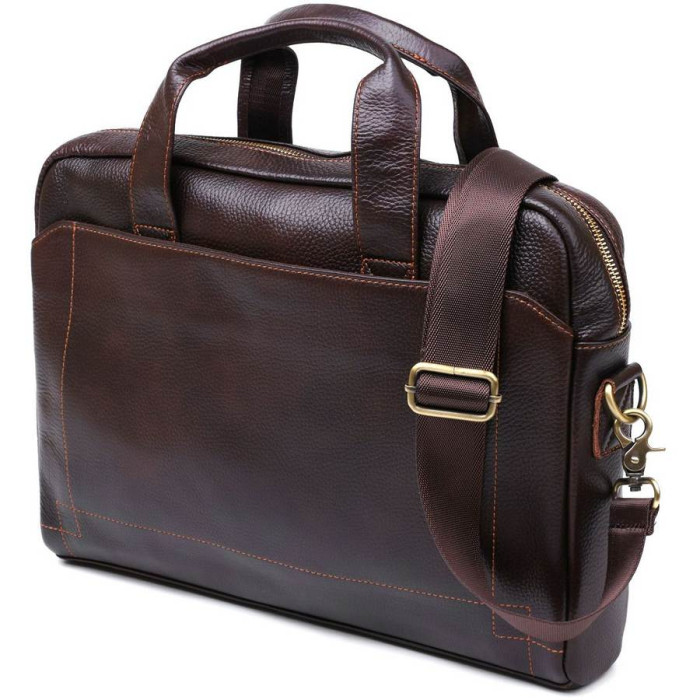 Чудова чоловіча сумка для ділових людей із натуральної шкіри високого класу та підвищеною стійкістю до зносу. Виконана ця модель в соковитому коричневому кольорі, що виглядає дуже презентабельно та багато. Усередині є просторе відділення, на зовнішній стороні є кишені на кнопках на всю довжину. Фактура виробу – зерниста та приємна на дотик.