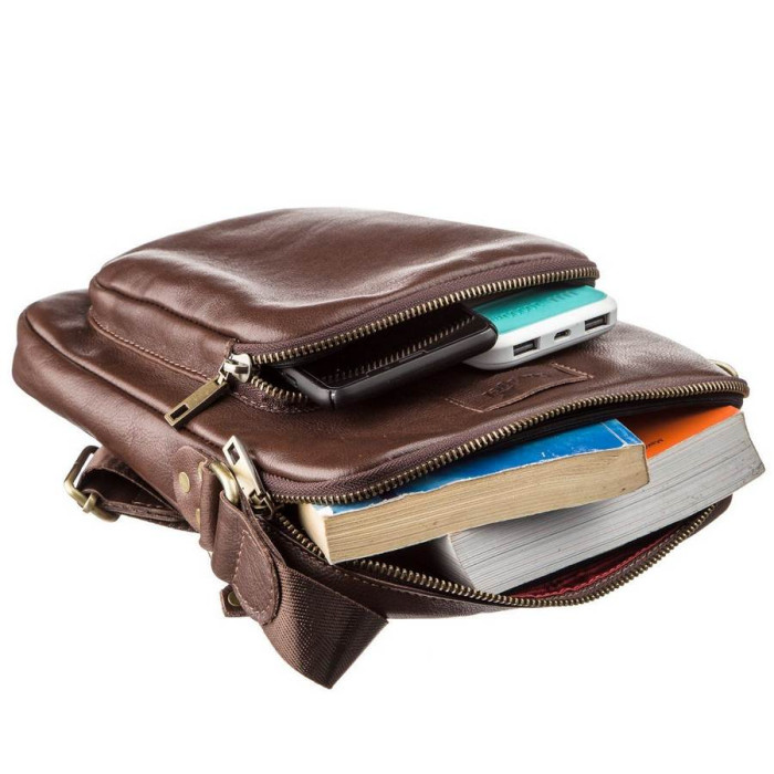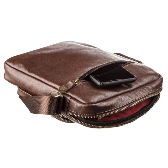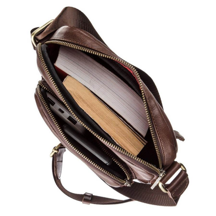 Якщо ви перебуваєте в пошуку сумки на кожен день з гарною якістю і зручною функціональністю - радимо звернути увагу на дану модель. Сумка виконана з якісної натуральної шкіри. Закривається на блискавку і доповнена фурнітурою кольору латуні. Усередині сумки є кишенька для планшета. Ключі, сигарети, паспорт, гаманець, блокнот все найнеобхідніше ви зможете помістити в цю сумку. Модель не важка і дуже акуратно зроблена. Ми впевнені, що шкіряна сумка - це ідеальний і потрібний подарунок кожному чоловікові. Вибирайте ту, яка буде до душі саме вам у нас на сайті.