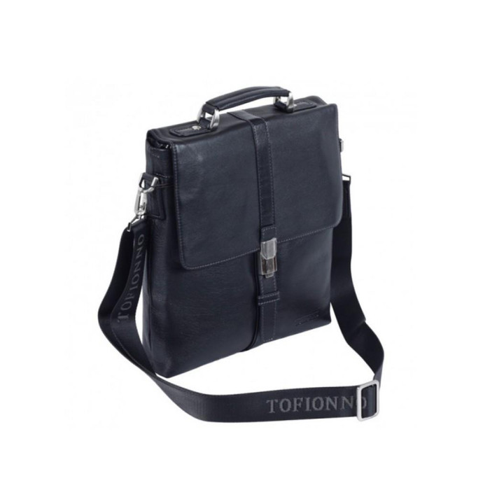 Чоловіча шкіряна сумка Tofionno P5117-2 BLACK виготовлена з натуральної шкіри чорного кольору і має гладку текстуру.