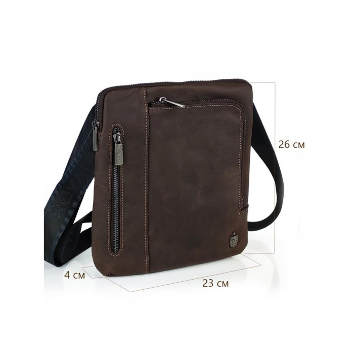 Чоловіча шкіряна сумка Royal Bag RB-V-JMD4-0030C виготовлена з натуральної шкіри Crazy Horse, яка досить м'яка, еластична, гладка, без блиску і надає сумці ефект старовини і вінтажності. Чим довше носити сумку, тим більшу цінність вона набуває, оскільки підкреслить індивідуальний стиль власника. Коричнево-шоколадний колір дуже багатий і насичений, з природними переливами відтінків, надає месенджеру унікальність і неповторність серед інших моделей бренду.