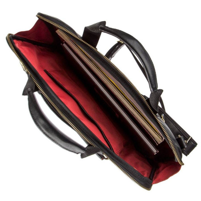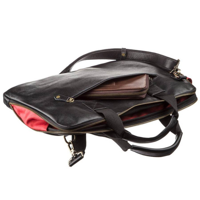 Солідна ділова чоловіча сумка з натуральної шкіри. Аксесуар доповнено якісною фурнітурою і оригінальною червоною підкладкою. Сумка підійде для ноутбука діагоналлю 15 дюймів. З нею вам буде комфортно ходити на зустрічі або наради. Ви можете носити сумку двома способами: на плечі і в руках. Сумка стане вашим незамінним помічником на кожен день і підійде чоловікам, які цінують діловий стиль і високу якість.
