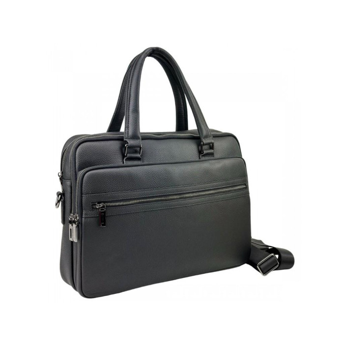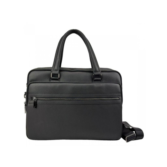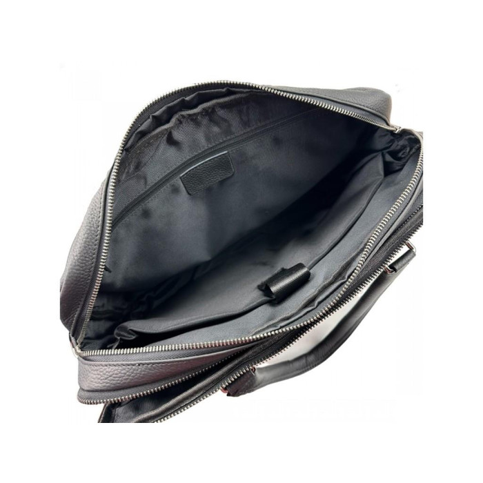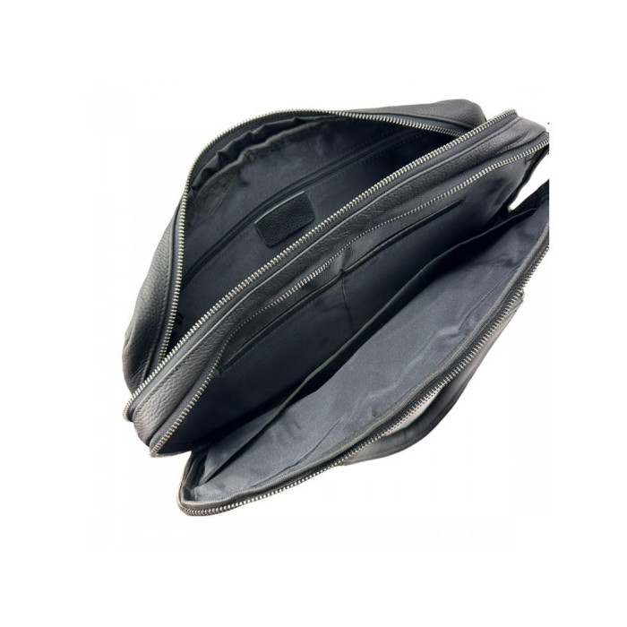 Стильна чоловіча сумка для ноутбука Tiding Bag A25F-252319A виготовлена з натуральної шкіри чорного кольору і має зернисту текстуру.