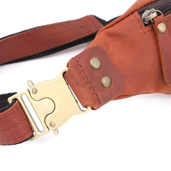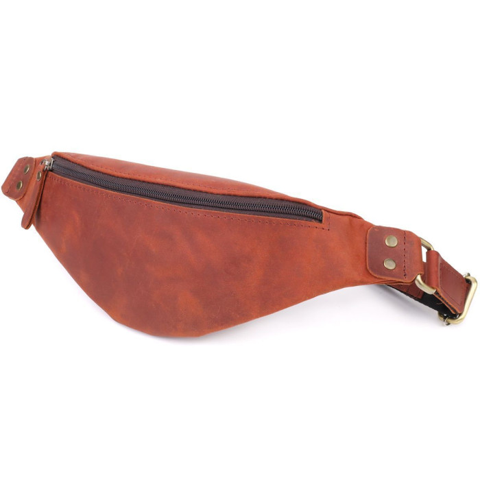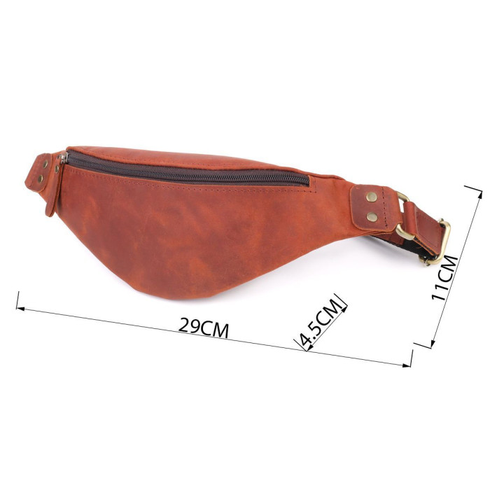Чоловіча сумка-бананка із вінтажної рудої шкіри – яскравий акцент вашого образу. Ця сумка-бананка виготовлена з натуральної шкіри з виразною вінтажною фактурою та благородним рудим відтінком, який робить аксесуар по-справжньому помітним та стильним. Теплий рудий колір надає моделі індивідуальності, підкреслюючи природну красу матеріалу.