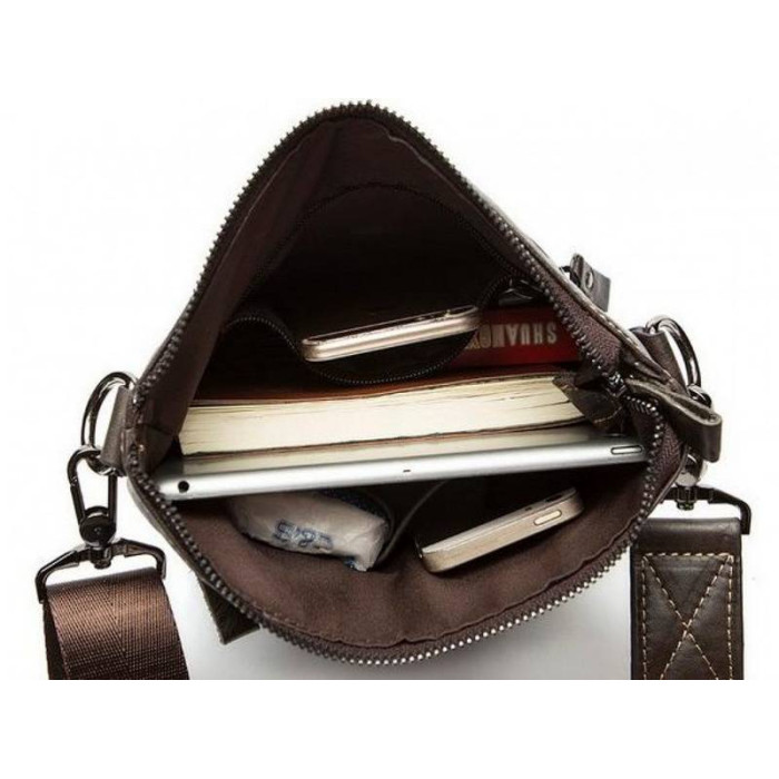 Чоловіча сумка через плече від Bexhill виготовлена з високоякісної натуральної телячої шкіри. У великому відділенні на блискавці є три внутрішні кишені, а також дві зовнішні бокові кишені на блискавці для телефону, портмоне або ключів. На шлейці є фіксатор, за допомогою якого можна відрегулювати необхідну довжину. Шлейка кріпиться на карабіни, так що при необхідності її можна зняти. Месенджер підійде як для повсякденного життя, так і для офісу.