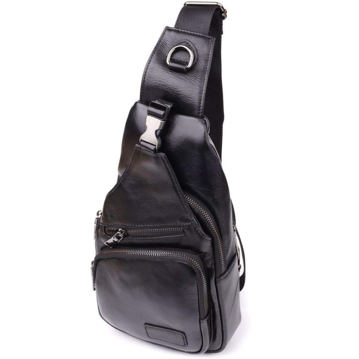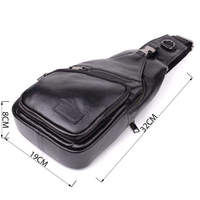 Чорна шкіряна сумка через плече поєднує у собі вишуканий зовнішній вигляд та продуману функціональність. Одне основне відділення на блискавці забезпечує безпеку та зручність зберігання речей. Усередині розташовані дві кишені — одна на блискавці для цінних дрібниць і одна відкритого типу для швидкого доступу.