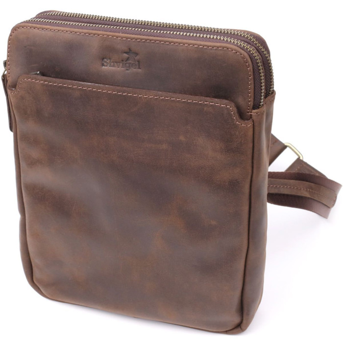 Чоловіча вертикальна сумка від українського бренду SHVIGEL виконана з натуральної вінтажної шкіри, яка згодом набуває благородного нальоту та підкреслює характер виробу. Компактні розміри та продумана організація внутрішнього простору дозволяють зручно розмістити документи, планшет чи особисті речі.