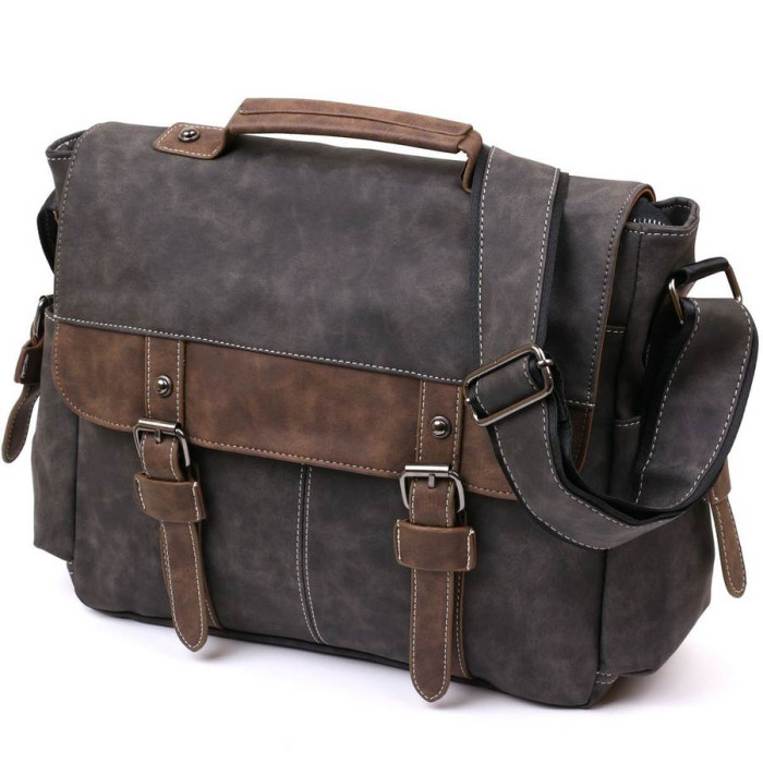 Відмінна сумка їз високоякісного шкірозамінника за приємною ціною для чоловіків будь-якого віку. Дана модель може похвалитися своєю місткістю та практичністю. Безліч кишень дозволяють розкласти весь вміст на свої місця, що дуже зручно. Колір сумки - сірий, поверхня - матова і дуже приємна на дотик. Така сумка стане просто незамінним супутником свого власника.