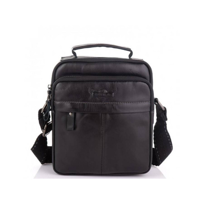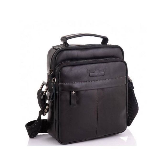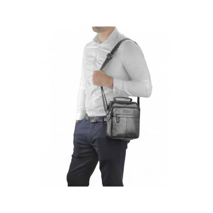Чоловічий месенджер чорного кольору виконаний з натуральної шкіри гладкої структури.