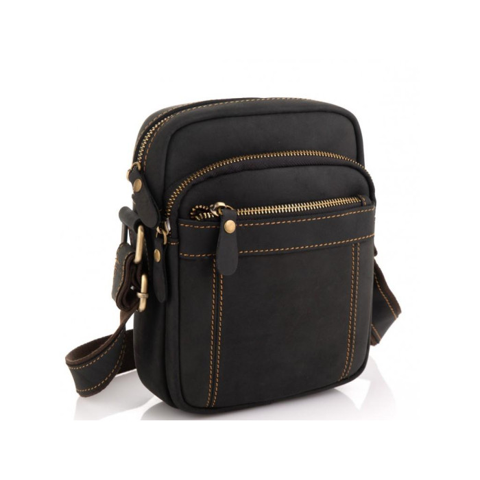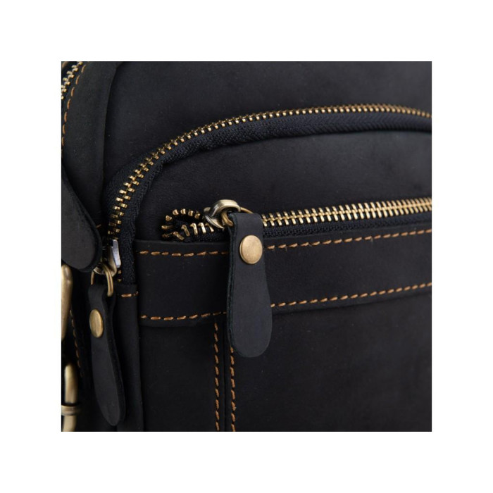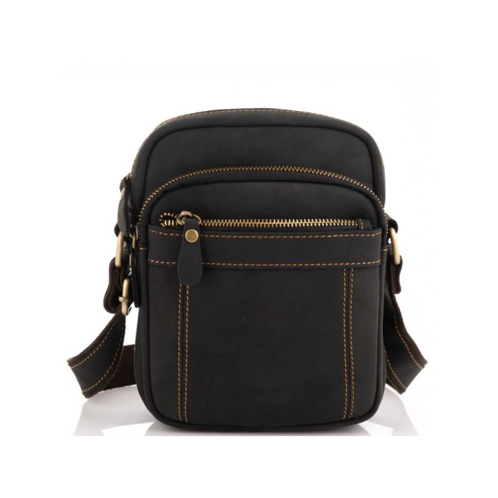 Чоловічий месенджер з натуральної телячої шкіри з матовою вінтажной поверхнею. Усередині основного відділення кишеня на блискавці, з лицьової частини два додаткових відсіки. З тильного боку кишеня на блискавці горизонтального формату. Наплічна шлейка виконана зі шкіри та ущільнені текстильної підкладкою, регулюється по довжині.