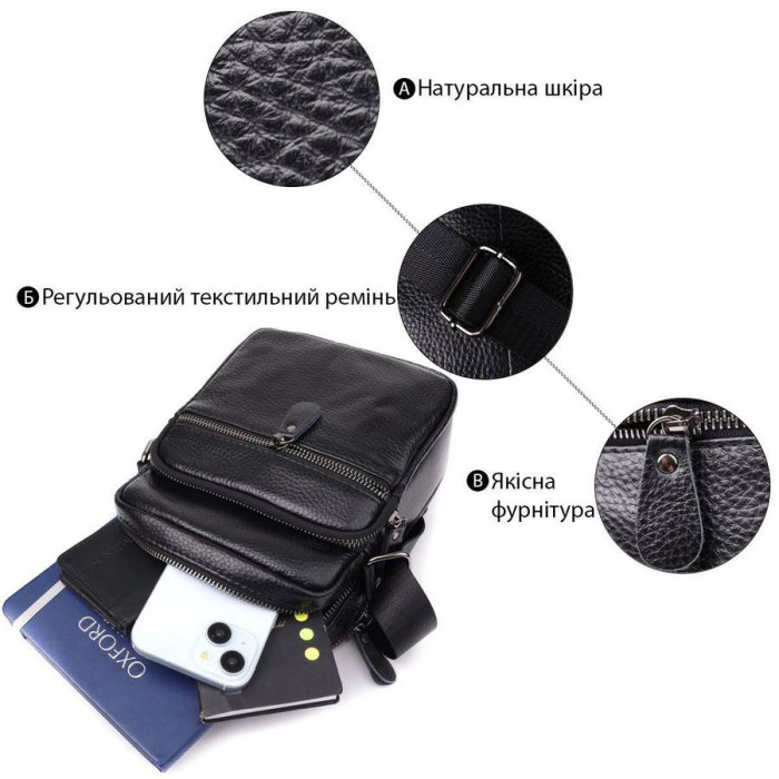 Чоловіча сумка через плече з натуральної шкіри - зручний та стильний аксесуар для повсякденного використання. Компактна, але містка модель ідеально підійде для міського ритму та ділових зустрічей.