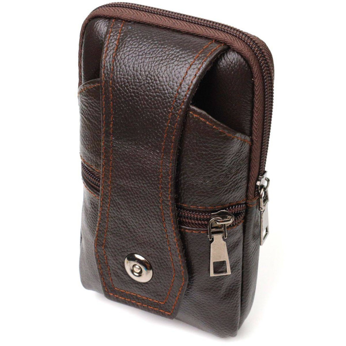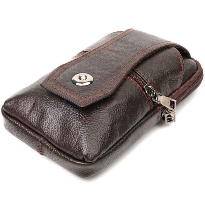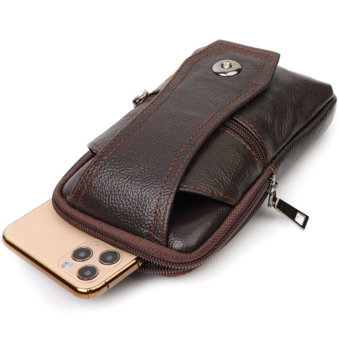 Практична сумка із натуральної м'якої шкіри. Модель має дуже зручний функціонал - основне відділення на блискавці, накладну кишеню під хлястиком на магнітній кнопці та вбудовану кишеню на блискавці, на лицьовій стороні. Носити можна на поясі за допомогою петельки або підчепивши її за допомогою карабіну. Виріб має компактний розмір і підійде замість клатчу для найнеобхідніших речей. Ідеальний варіант для цінних речей у дорогу чи подорож.