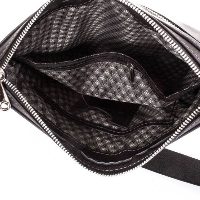 Кількість відділів: 1 основний відділ. 3 накладних кишені, одна з яких на блискавці, візитницю і кишенька для кулькової ручки. Спереду прорізна кишеня на блискавці, ззаду сумки є теж прорізна кишеня