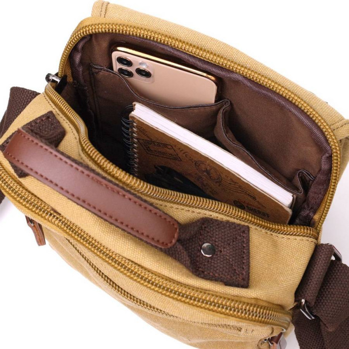 Ідеальна чоловіча сумка із якісного щільного текстилю. Аксесуар має достатньо кишень різних розмірів, що є запорукою порядку в сумці. Сумку можна носити в руці, на плечі та через плече. У поєднанні з якісною фурнітурою та міцною підкладкою сумка прослужить Вам не один рік. Виріб стане чудовим подарунком для будь-якого чоловіка.