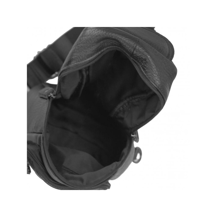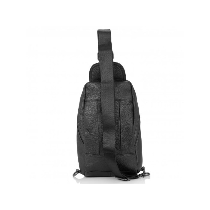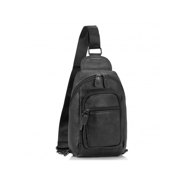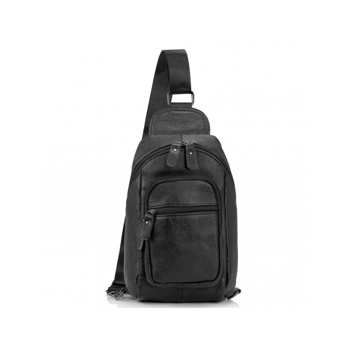 Виробник: Tiding Bag Тип: сумка-слінг Розміри (см): 17 x 28 x 9 Колір: чорний Матеріал: натуральна шкіра Тип носіння: через плече Плечовий ремінь: Довжина плечового ременя (см): 59-113 Сумка-слінг чоловіча чорна. Плечовий ремінь текстильний, пуллери -шкіряні, підкладка з щільного текстилю. Сумка має одне основне відділення, з лицьового боку- накладна кишеня на блискавці, на якій розміщена ще одна маленька кишеня. Усередині рюкзака є кишеня на блискавці і кишеня відкритого типу.