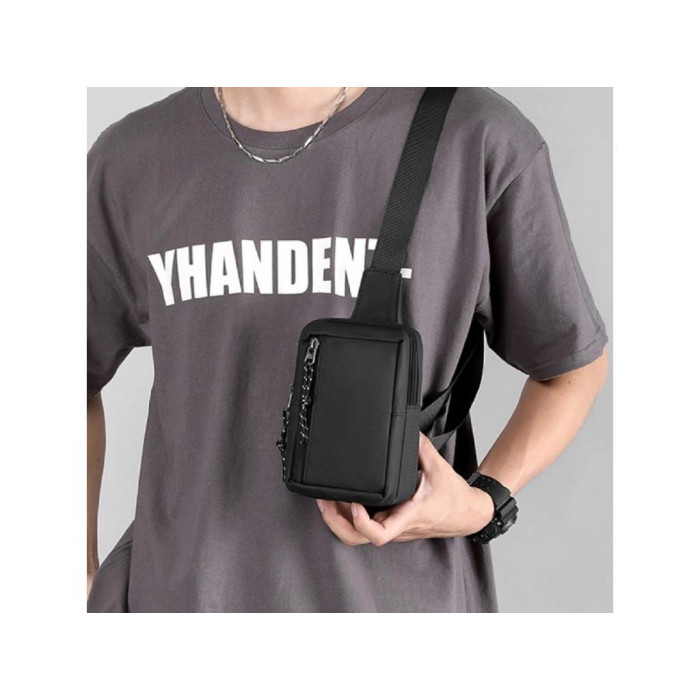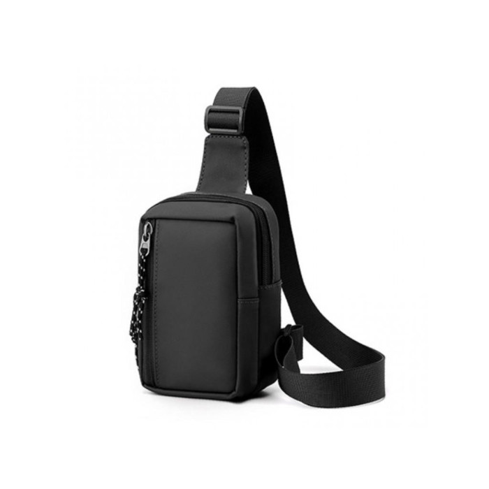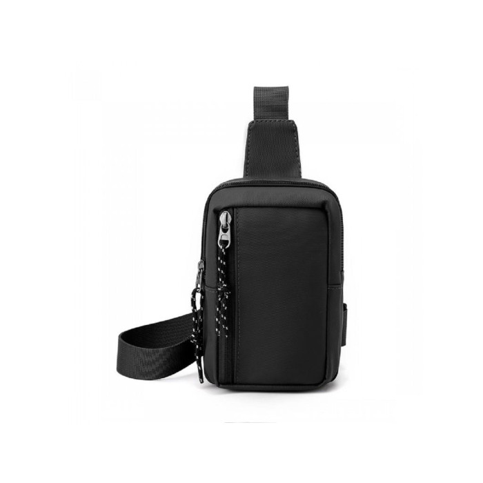 Чоловіча текстильна сумка слінг ATN02-2041A пошита з міцної чорної тканини.