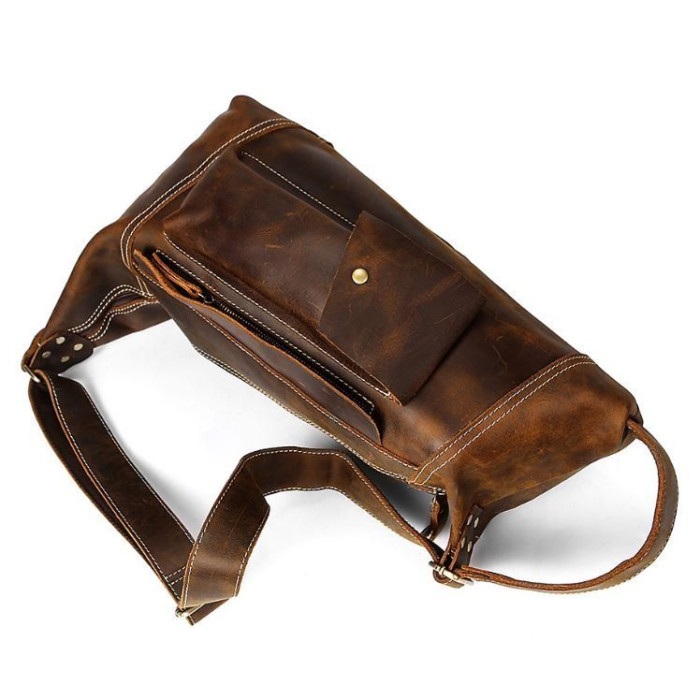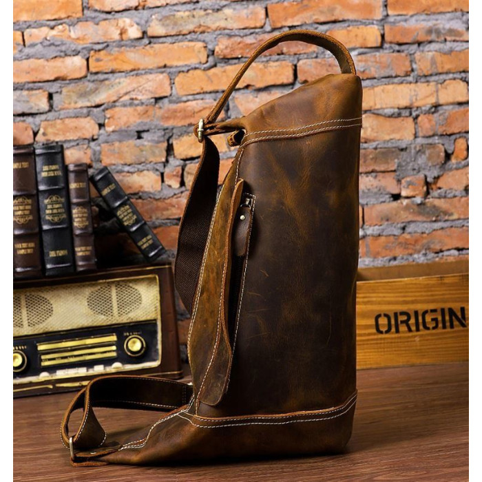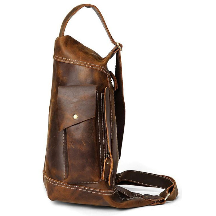 Дуже цікава і оригінальна чоловіча сумка з матової шкіри. Сумка досить модно і дорого виглядає. Буде зручно з такою сумкою ходити в зал. Вам не доведеться з таким рюкзаком все нести з собою в руках. Аксесуар виконаний з щільної телячої шкіри. Згодом сумка буде виглядати ще ефектніше за рахунок особливостей такої шкіри.
