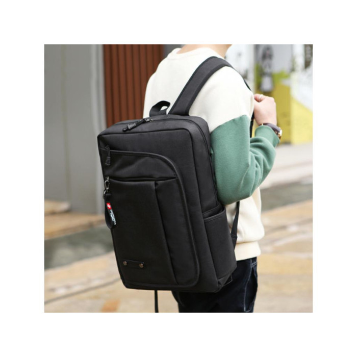 Чорний чоловічий рюкзак для ноутбука Tiding Bag BPT01-CV-2013A виконаний із щільного текстилю та має розміри 28 x 44 х 10 см. Рюкзак має одне відділення на блискавці.