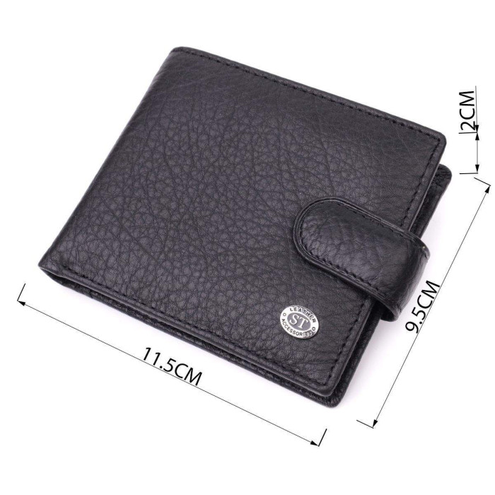 Горизонтальне чоловіче портмоне, яке прикрашене металевим логотипом виробника на лицьовій стороні. Аксесуар з натуральної шкіри, він складається з двох відділень для купюр, кишені на блискавці, трьох осередків для карт, двох прихованих кишень та кишені для монет. Портмоне доповнено надійною фурнітурою та міцною підкладкою, закривається навпіл, хлястиком на кнопку. Шкіряний та якісний аксесуар на подарунок, це завжди дуже хороша ідея.