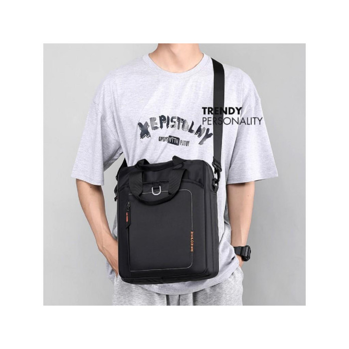 Чоловічий функціональний месенджер А4 із ручкою Confident AT08-2973A з міцного текстилю у чорному кольорі.