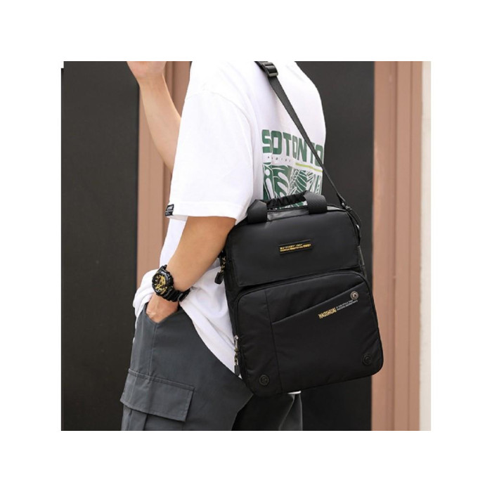 Чоловіча сумка через плече Confident AT08-6812A з міцного текстилю в чорному кольорі.