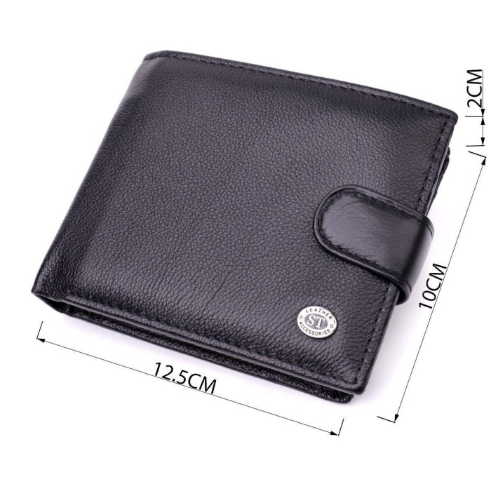 Функціональне портмоне для стильних чоловіків із натуральної шкіри найвищої якості. Аксесуар складається з двох містких відділень для купюр, кишені на блискавці, на всю довжину, дев'яти осередків для карт, двох прихованих кишень, двох кишень під плівкою та кишені для монет. Зовні виріб прошитий рівним рядком по краю і прикрашений металевим логотипом компанії виробника. Портмоне доповнено надійною фурнітурою та міцною підкладкою. Запакований гаманець у фірмову картонну коробку білого кольору.