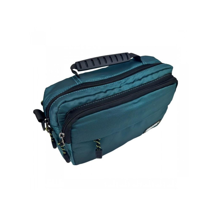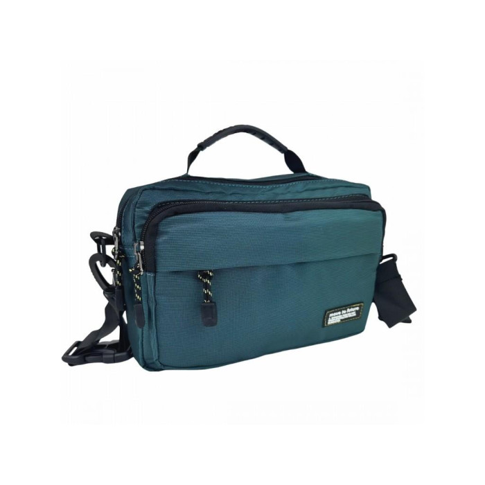 Сумка через плече в горизонтальному форматі Confident AT09-T-10862GR пошита із міцного текстилю у зеленому кольорі.