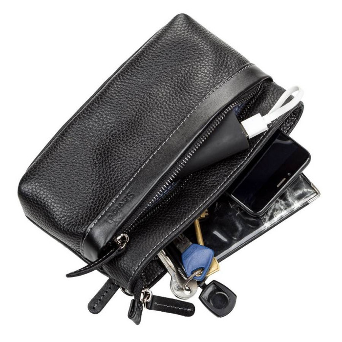 Зручна чоловіча сумка-клатч з натуральної високоякісної зернистої шкіри. Даний аксесуар не тільки функціональний у використанні, але доповнює і підкреслює діловий, елегантний образ сучасного чоловіка.