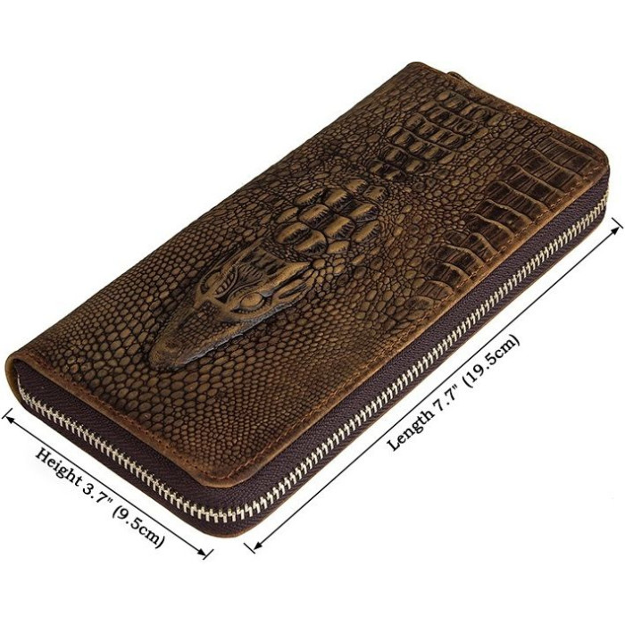 Ця оригінальна річ виготовлена з натуральної шкіри з тисненням під крокодила, використано тільки якісні матеріали (фурнітура, текстиль для підкладки всередині). Прошито міцною ниткою коричневого кольору.