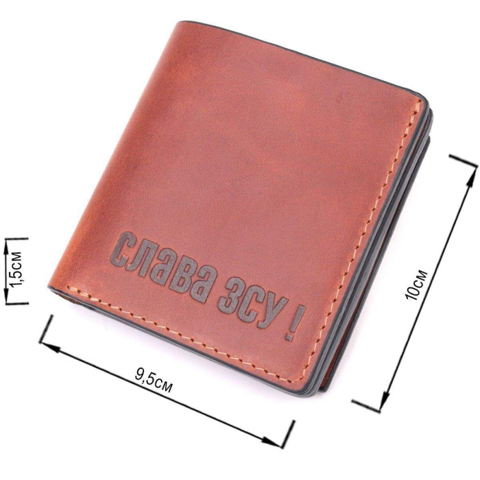Чудовий шкіряний гаманець з патріотичним написом "Слава ЗСУ". Виріб пошитий із якісної шкіри, з високими показниками зносостійкості. Портмоне має два великих відділення для купюр усіх номіналів, а також достатню кількість відділень для карток та монетницю, застібається виріб на надійний магніт. Шкіряний гаманець стане чудовим подарунком на всі випадки життя.