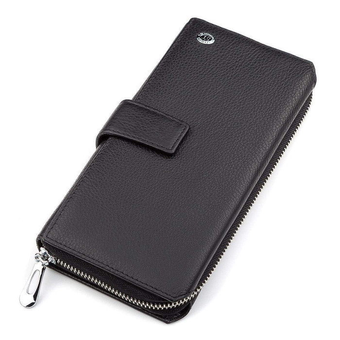 Представлена модель має класичний дизайн, виконаний в чорному кольорі з використанням зносостійкої і якісної шкіри, доповненої всередині текстильною підкладкою. Місткість гаманця відмінна, а окремий блок слотів для платіжних карток дозволяє вміщати цілих 20 візиток, дисконтних і банківських карт. Додатково є прилеглі кишені, прозорі відділи для документів і відділ на блискавці для дрібниці з іншими невеликими предметами. У комплектації є ремінець на зап'ястя і красива коробка.