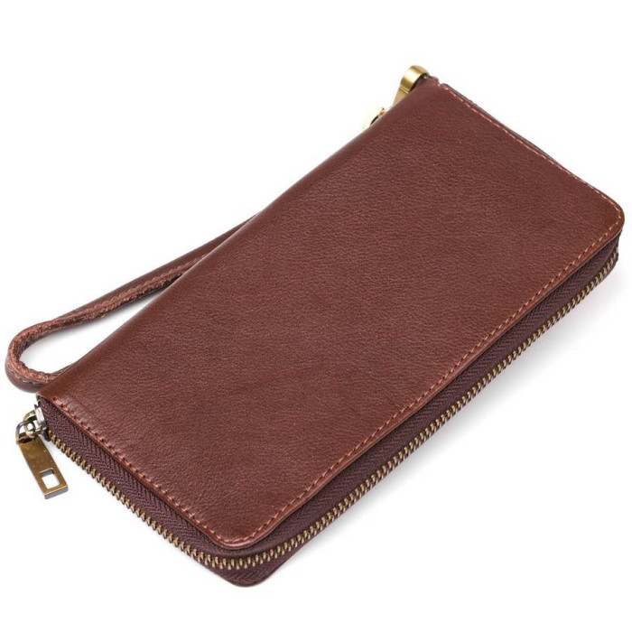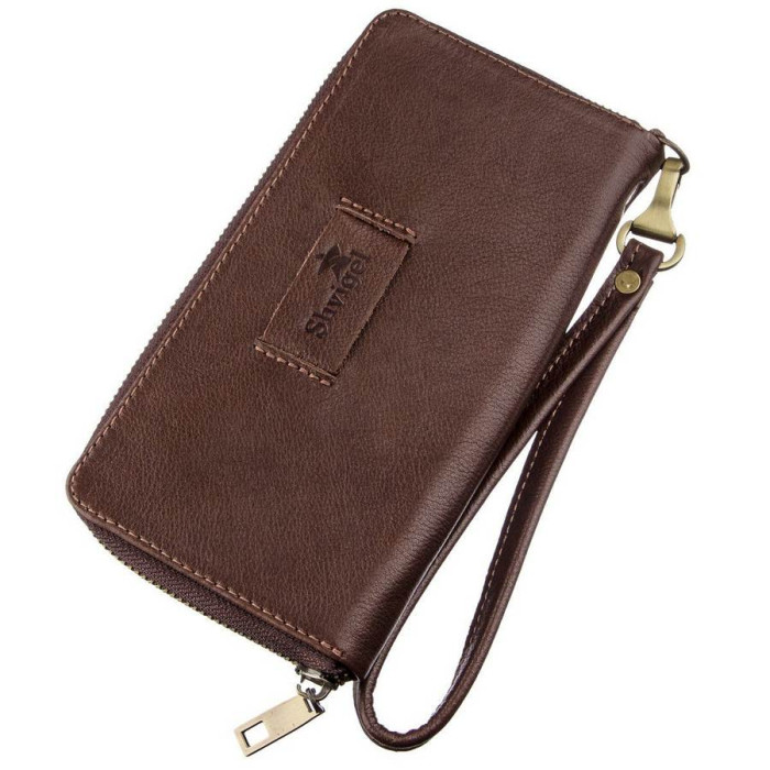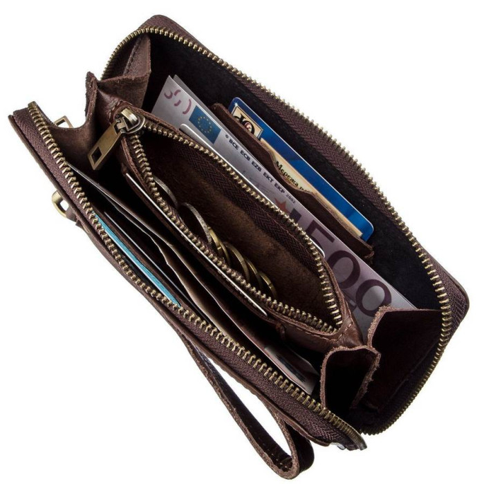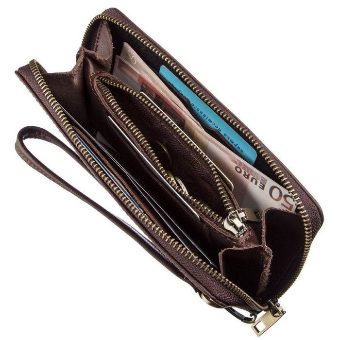 Стильний шкіряний клатч з натуральної шкіри найвищої якості. Дизайн клатча розроблений спеціально з урахуванням усіх побажань чоловіків. Виріб має дві містких кишені і кишеню на блискавці для монет або банкнот. Клатч досить місткий. Ви можете носити його замість барсетки. Такому аксесуару буде радий будь-який чоловік. На лицьовій стороні аксесуара тиснений логотип бренду.