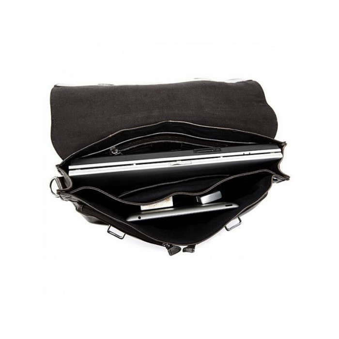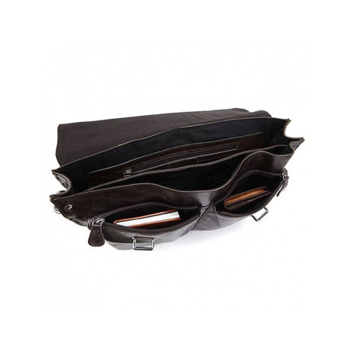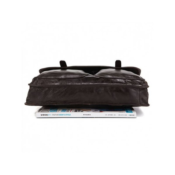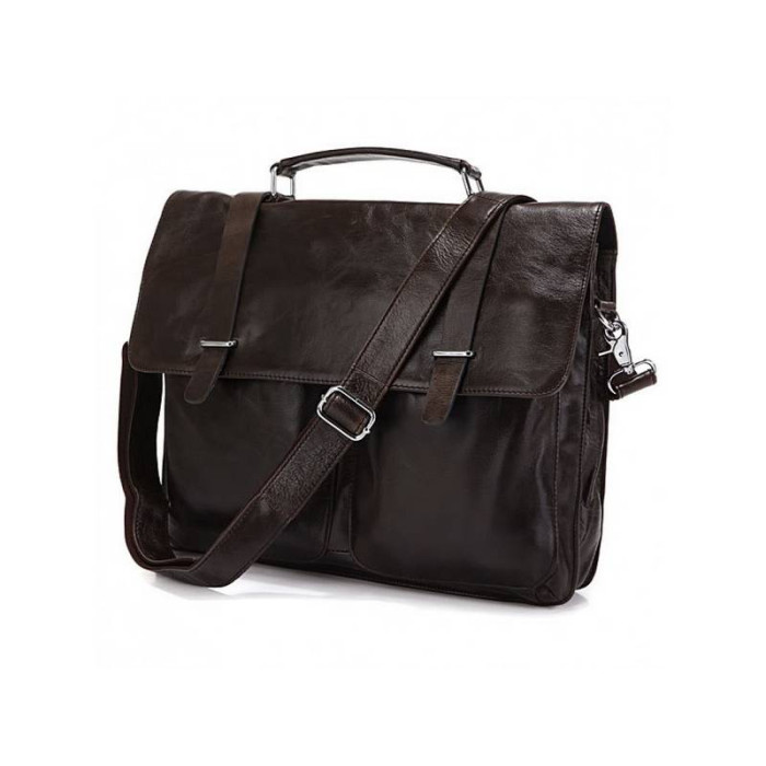 Чоловіча сумка Tiding Bag 6057J зроблена з натуральної шкіри люксової якості. Має шикарний коричневий колір, який чудово гармонює із стриманим діловим стилем. В основне відділення без проблем помістяться документи, ноутбук і портмоне. Тут же є маленька кишеня на блискавці, куди можна заховати цінні речі. Поруч знаходиться відкрита містка кишеня для щоденника та іншої канцелярії. З лицьового боку під відкидним клапаном знаходяться накладні кишені, де можна зберігати засоби гігієни або ключі. Шкіряний ремінь регулюється по довжині за допомогою пряжі. Він прошитий міцною ниткою, тому з часом не буде деформуватися.