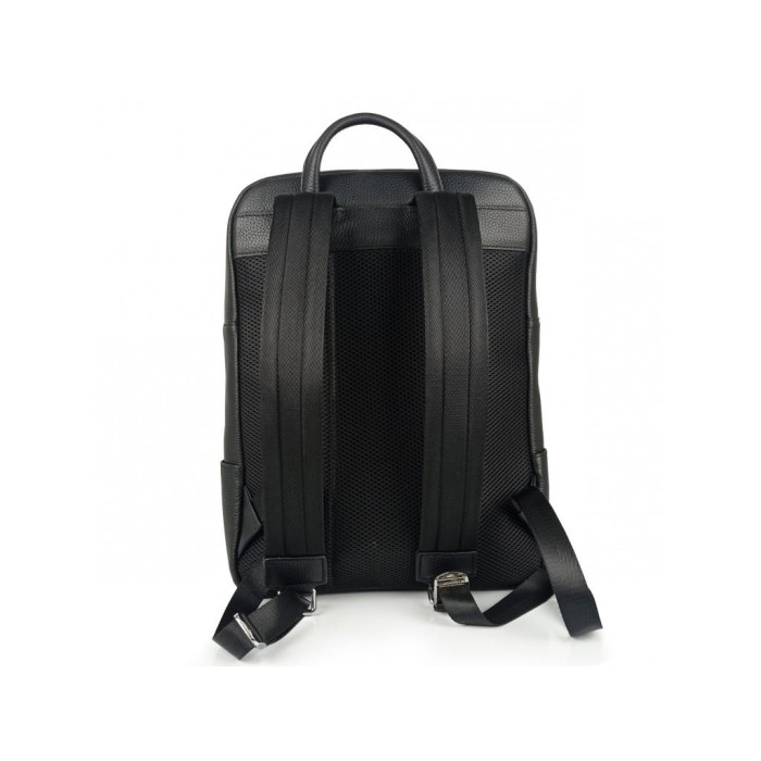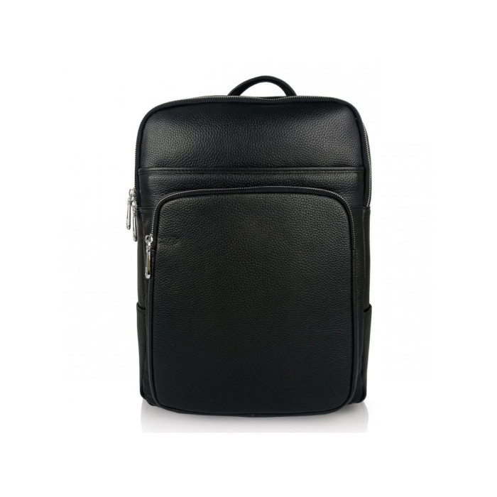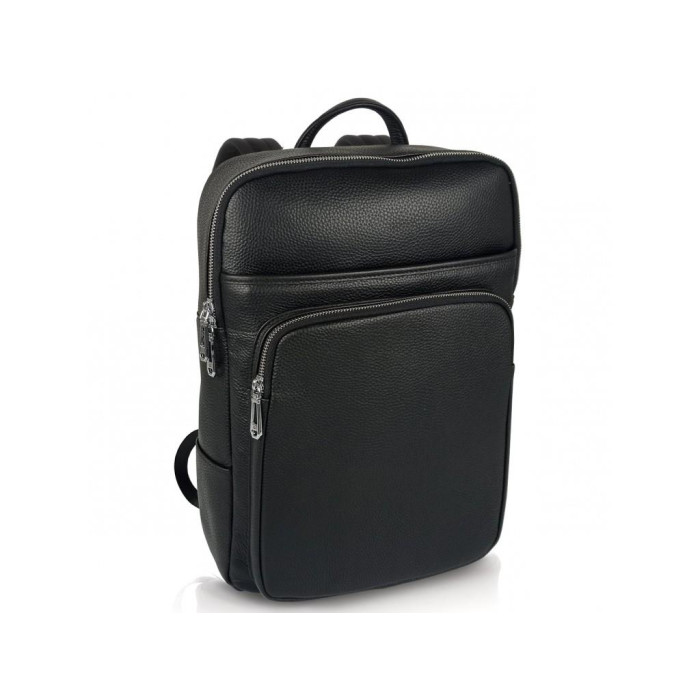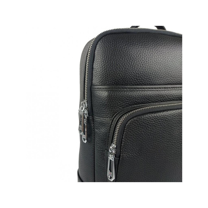 Стильний шкіряний чоловічий рюкзак Tiding Bag N2-191116-3A виготовлений з натуральної шкіри чорного кольору має зернисту матову текстуру.