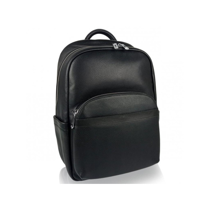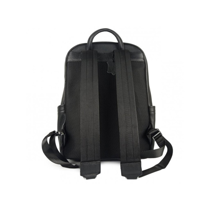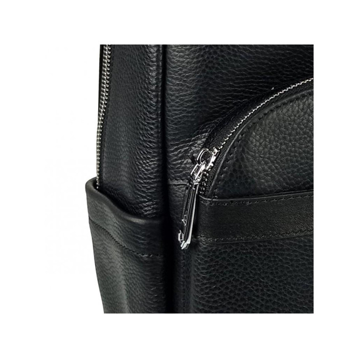 Стильний шкіряний чоловічий рюкзак Tiding Bag N2-201218-3A виготовлений з натуральної шкіри чорного кольору має гладку матову текстуру.