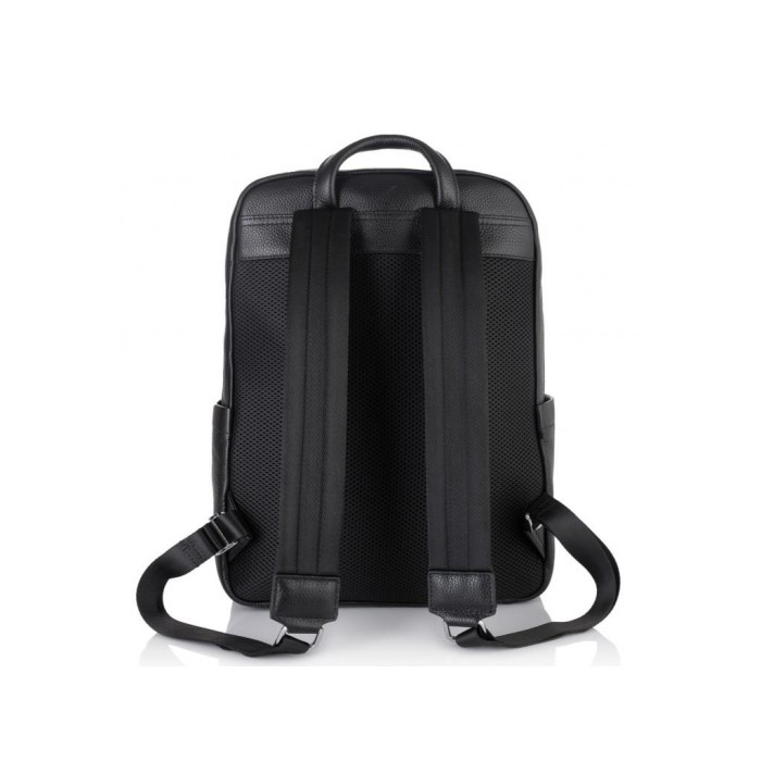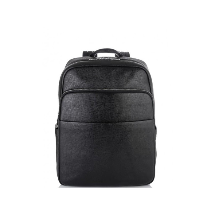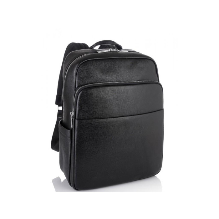 Чоловічий рюкзак для ноутбука діагоналлю 16 дюймів з натуральної телячої шкіри з зернистою поверхнею. З лицьового боку розташована накладна кишеня на блискавці і плоский відсік на магніті. У представленій моделі одне основне відділення, яке закривається на змійку. Наплічні шлейки регулюються по висоті посадки. М'яка дихаюча спинка для максимального комфорту.
