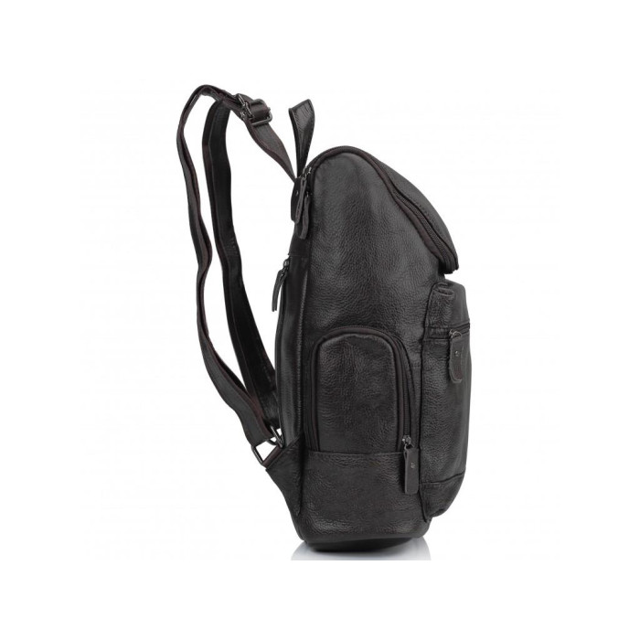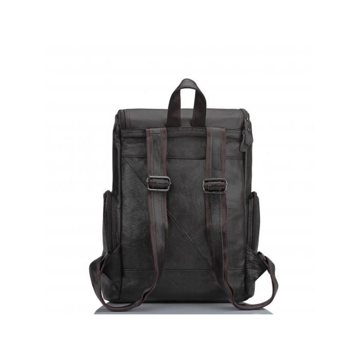 Чоловічий рюкзак з натуральної шкіри, має зернисту текстуру. Дана модель дуже містка. На замках є шкіряні пуллер. Для носіння можна використовувати наплічні шлейки або шкіряну ручку. Рюкзак складається з основного відділення, всередині якого є кишеня для ноутбука на 14 дюймів з фіксатором, а також кишеня на блискавці і дві кишені відкритого типу. На лицьовій стороні ода велика кишеня на блискавці, з тильного боку відсік вертикального типу на блискавці. З боків об'ємні кишені.