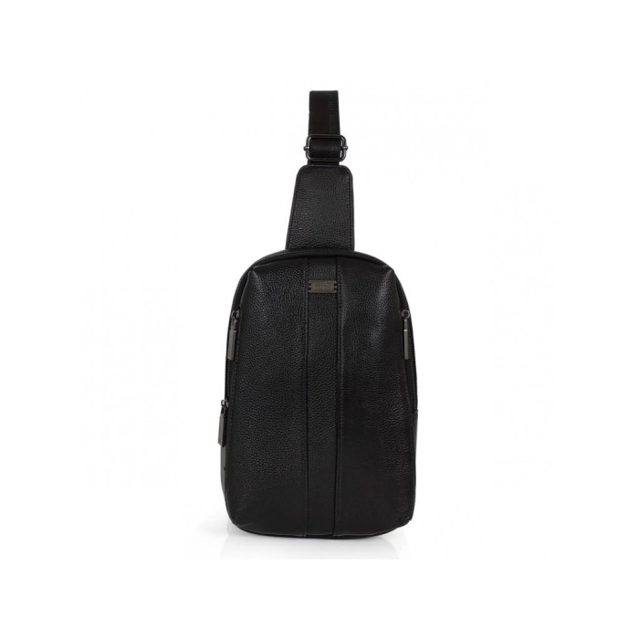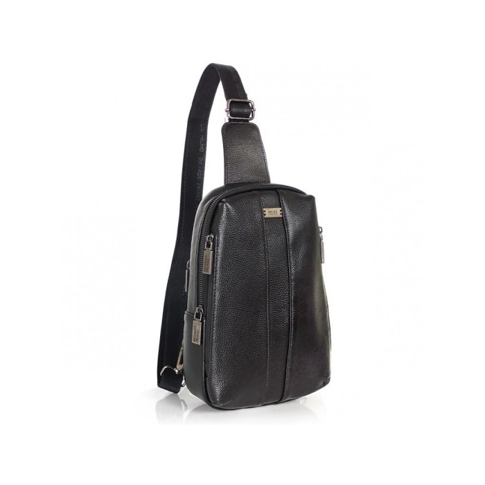 Стильний шкіряний чоловічий слінг Ricardo Pruno RP-F-A25F-6616A виготовлений з натуральної шкіри чорного кольору має зернисту текстуру.