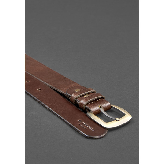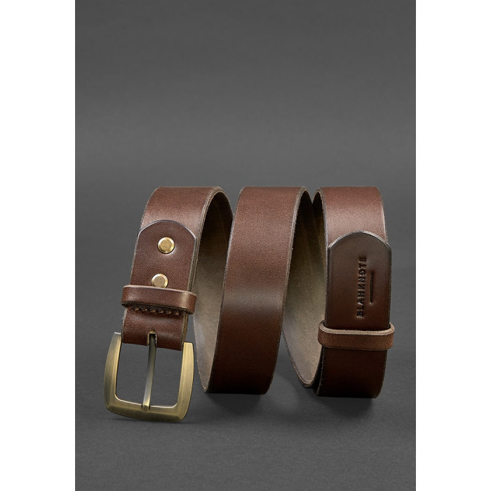 Стильний коричневий ремінь з міцної та якісної натуральної шкіри, який робить його практично вічним. Шкіра щільна, але не жорстка, має гладку поверхню з легким блиском.