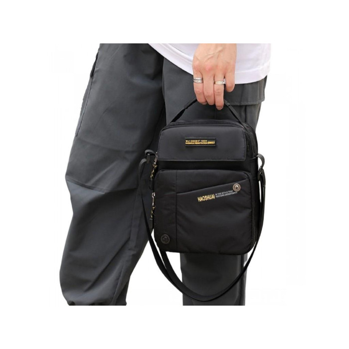 Чоловіча сумка через плече Confident AT08-6811A пошита із міцного текстилю у чорному кольорі.