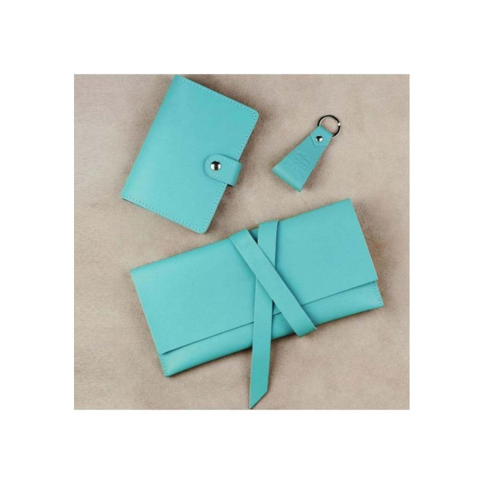 Розмір: тревел-кейс з хлястиком (12х24 см), обкладинка для паспорта (14*10 см), брелок (9х4см), листівка (10х15 см).