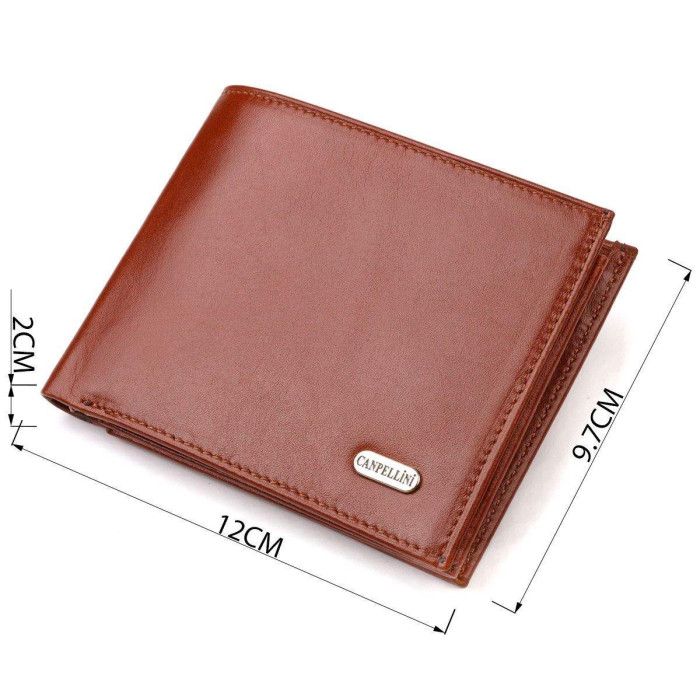 Стильний чоловічий гаманець із натуральної гладкої шкіри. Аксесуар має основне відділення для купюр, сім осередків для кредиток, три кишені під сіточкою для перепусток, дві приховані кишені, кишеню на блискавці. На лицьовій стороні, у правому нижньому куті металевий логотип компанії виробника. Якщо ви вибрали товар цієї фірми, можете не сумніватися, що виріб прослужить дуже довго і не втратить свого первісного вигляду.