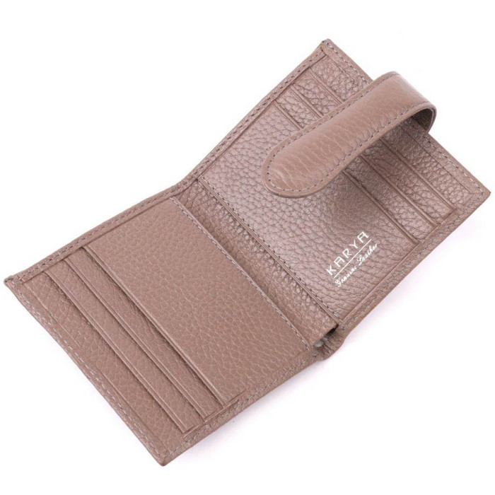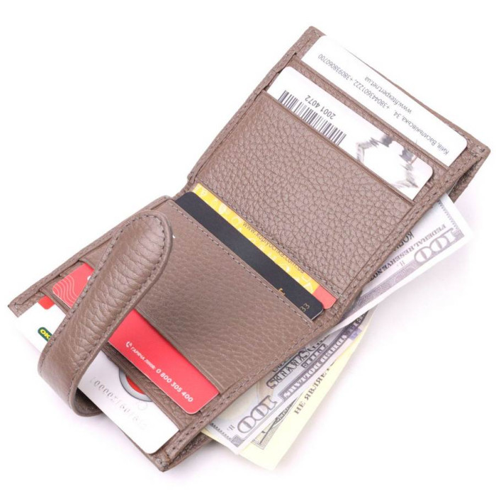 Відмінний маленький жіночий гаманець із натуральної шкіри високої якості. Усередині є відділення для купюр та осередки для кредитних карток. У виробі використано якісну фурнітуру, а також міцну фірмову підкладку. Невеликий шкіряний гаманець поміститься навіть у найменшу сумочку. Модель закривається на шкіряний хлястик з кнопкою. Такий гаманець однозначно порадує будь-яку жінку.