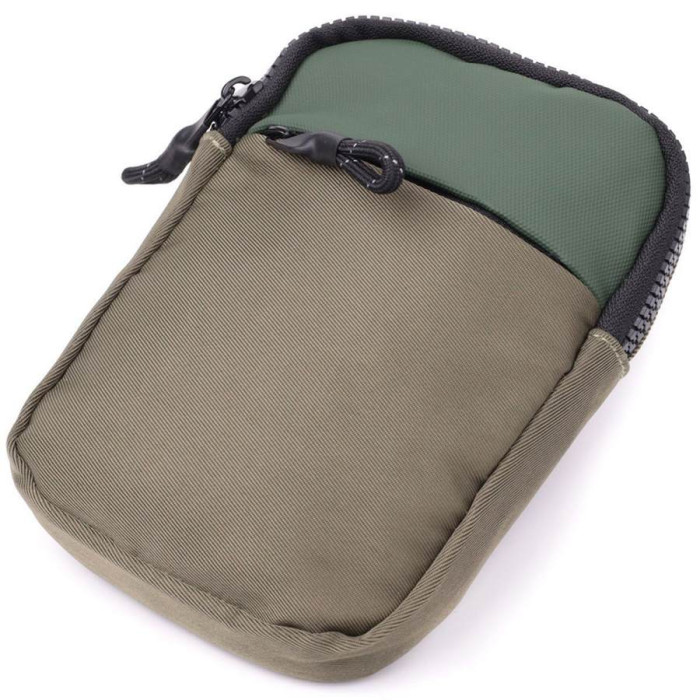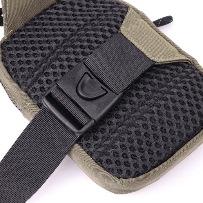 Представляємо Вам ідеальний варіант сумки слінг бег, яка підійде як для повсякденного використання, так і подорожі, коли всі цінні речі повинні бути в безпечному місці та під рукою. Аксесуар виготовлений з якісного текстилю в комбінації зеленого та оливкового кольору, з контрастними вставками чорного кольору, що надає йому ексклюзивного вигляду та стилю. У моделі використано якісну фурнітуру чорного кольору. Сумка легко вміщує паспорт, телефон, ключі, гаманець та ще кілька дрібниць. Якщо Ви шукаєте зручну та легку сумку, яка задовольнить Вас за такими параметрами, як - міцність, практичність, місткість, ексклюзивність, універсальність, то ця модель перед Вами, вона має всі вище перелічені якості та стане одним з Ваших улюблених аксесуарів.