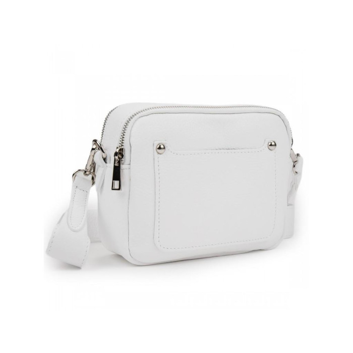 Кросбоді Firenze Italy F-IT-9857W з натуральної шкіри із зернистою текстурою, в білому кольорі.