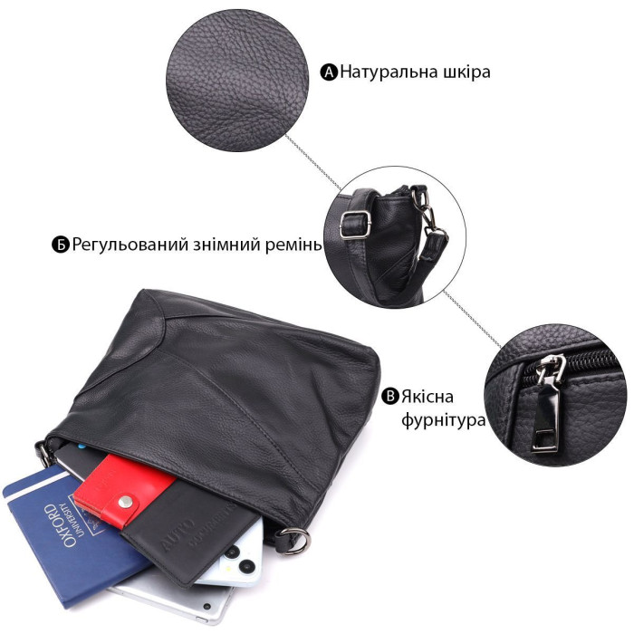 Ця шкіряна сумка – відмінне рішення для тих, хто цінує комфорт, стиль та надійність в одному аксесуарі.