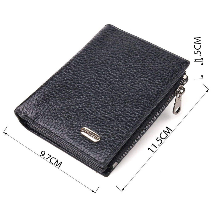 Практичний гаманець компактного розміру з натуральної шкіри. Аксесуар має відділення для купюр, монетницю, що закривається на блискавку, дві приховані кишені та десять осередків для карток, один під сіточкою. Закривається аксесуар у два складання на кнопку. Якісний шкіряний аксесуар завжди вважався показником смаку та достатку, саме такі вироби представлені у нашому магазині, у нас кожен знайде щось для себе.