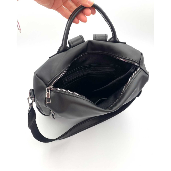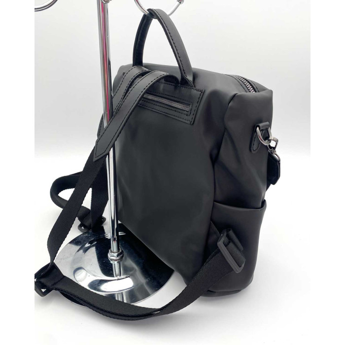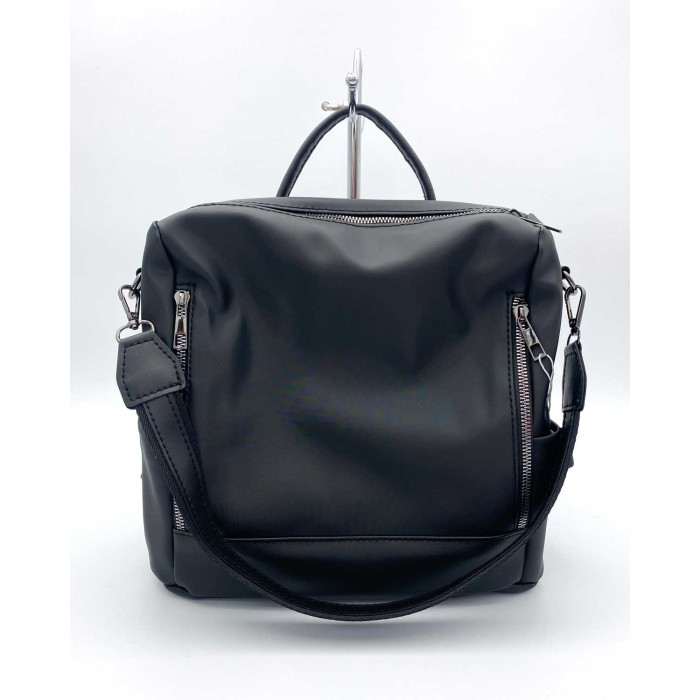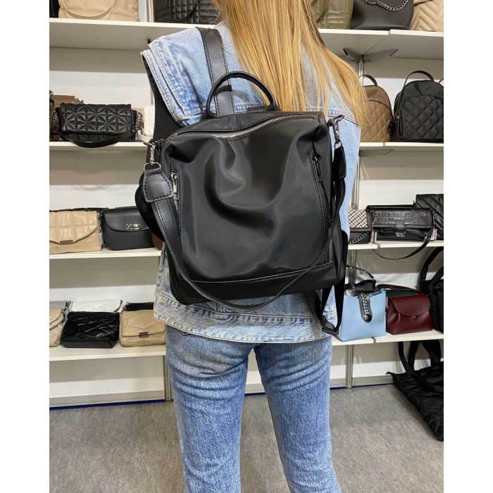 Нейлоновий сумка рюкзак 45724, Виробництво Україна. Матеріал водонепроникний, не затирає одяг. Основне відділення застібається на блискавку. Всередині сумки щільна підкладка, має дві кишені на блискавці і один відкритий. У сумці спереду дві кишені на блискавці і один ззаду для дрібних предметів. Сумка-рюкзак має плечовий ремінь, максимальною довжиною 68 см. Шлейки рюкзака регулюються під різну довжину.