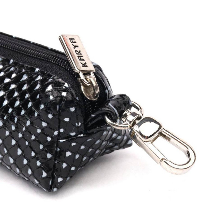 Стильна ключниця із натуральної фактурної шкіри. Всі матеріали з яких виконано виріб – шкіра, фурнітура, підкладка – високої якості з підвищеними показниками стійкості до різного зносу. Аксесуар упакований у фірмову коробку, буде чудовим подарунком для будь-якої жінки.